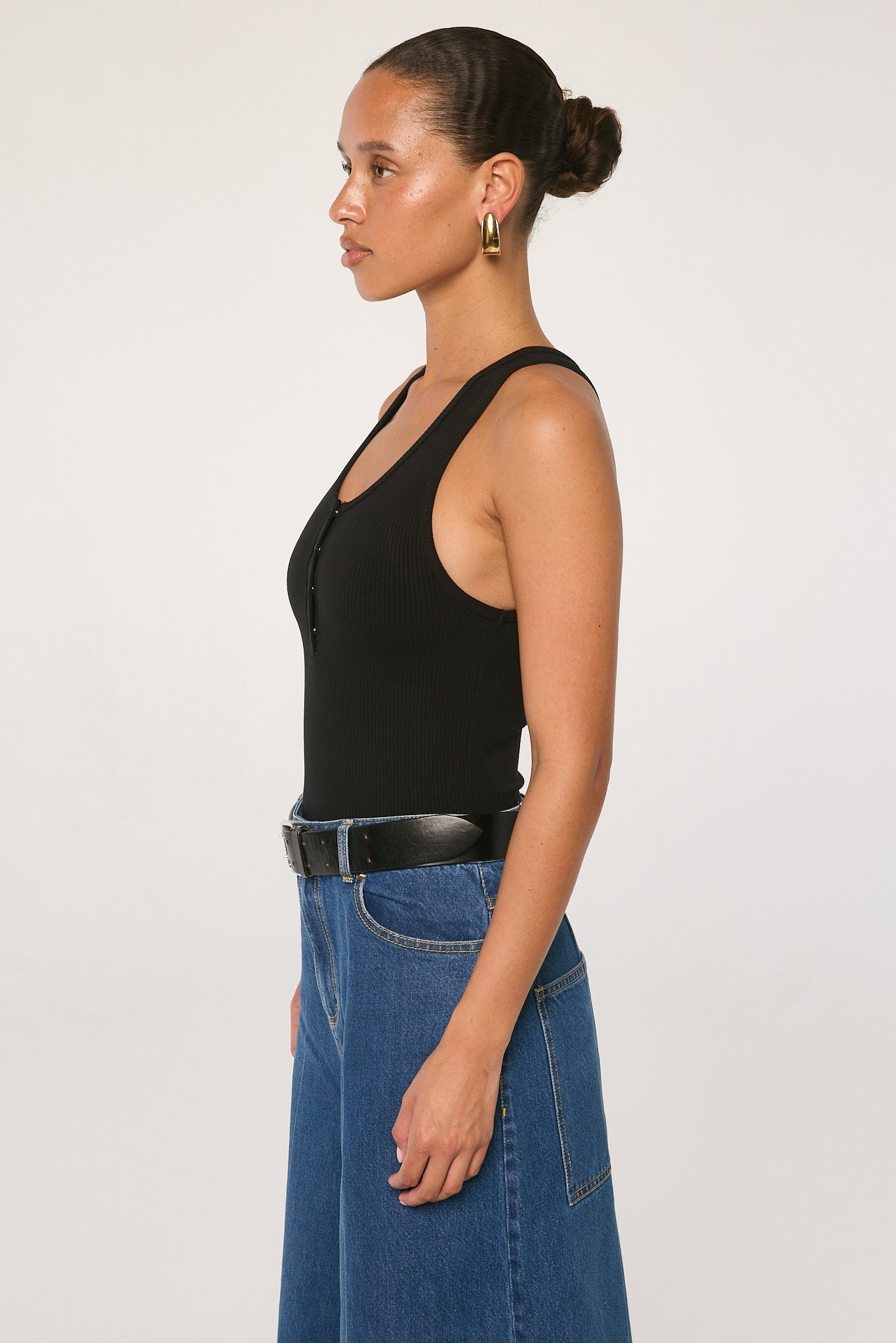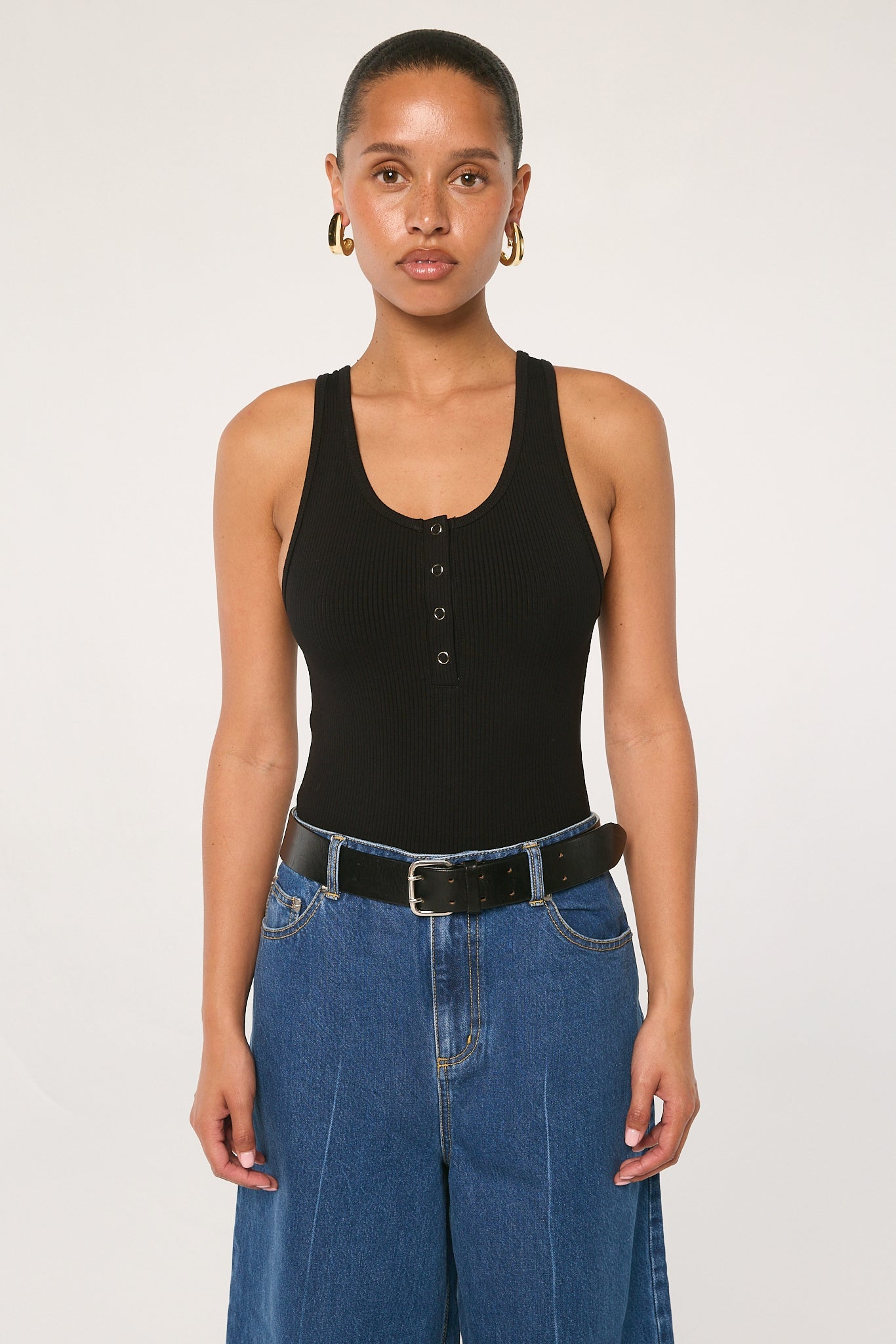 Re-introducing the Adrienne, a shaping bodysuit that first made it's debut back in 2015, now back as a part of our Archive Capsule Collection. Designed for a close fit in a heavy 4x2 rib selected for its stretch and structure, the sleek silhouette features a scoop neckline secured with four nickel snaps. Pair with the Janae skirt or your favorite denim.