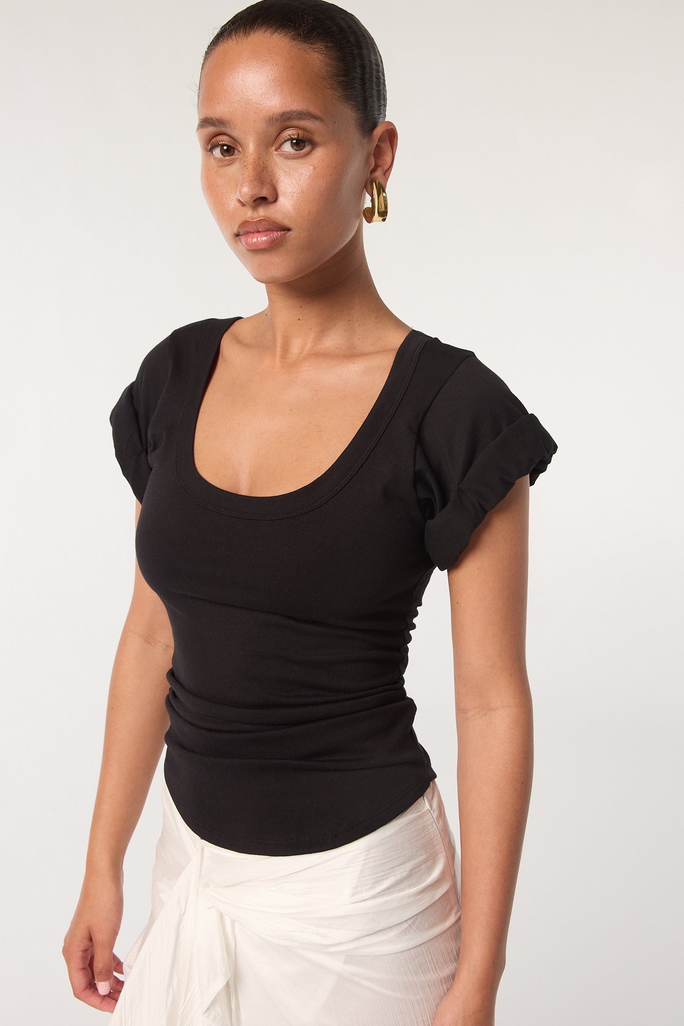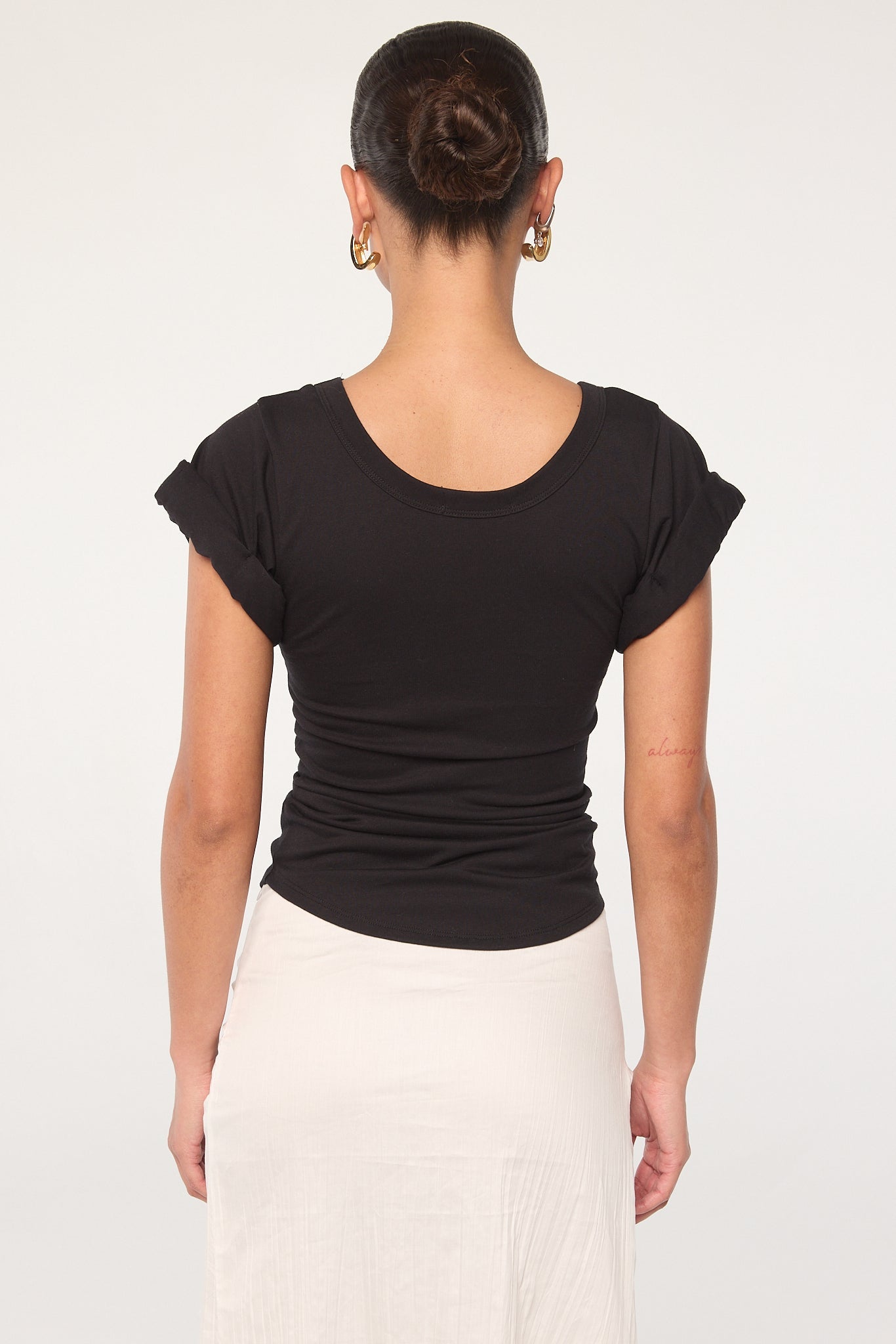 Black Roll Sleeve Scoop Neck T-Shirt